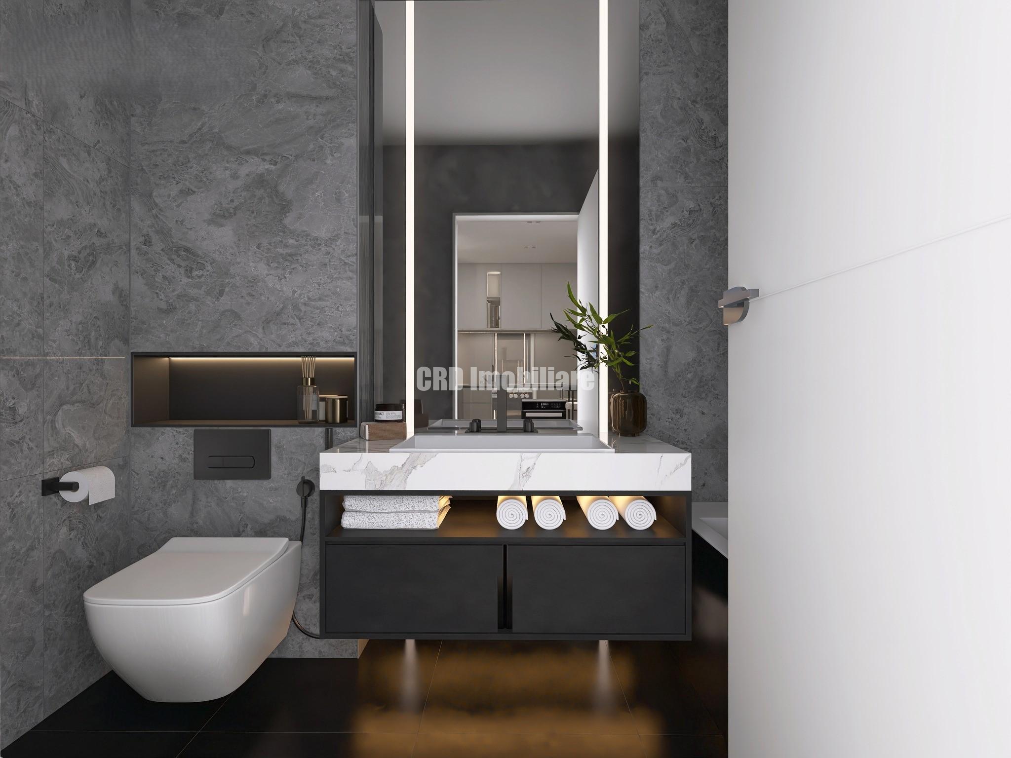 ETAJ 1: apartament cu 1 camera in suprafata construita de 47 mp (43 mp + 4 mp logie) PRET 54.700 euro + 21% TVA SEMIFINISAT.